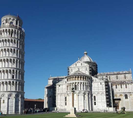 Pisa è una città italiana della Toscana conosciuta soprattutto per la celebre torre pendente. Già fuori asse al suo completamento, nel 1372, il cilindro di marmo bianco alto 56 m non è altro che il campanile della marmorea cattedrale romanica che sorge lì accanto, in Piazza dei Miracoli.